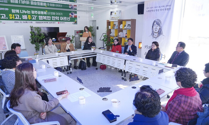 강 시장은 이날 ‘함께 나누는 광주공동체 이야기’ 네 번째 만남으로 광주의 만학도들을 초대했다. 강 시장은 갈등해결사 마을활동가와 첫 만남을 시작으로 이주여성, 청년활동가 등 광주공동체 구성원들과 소통을 이어가고 있다.