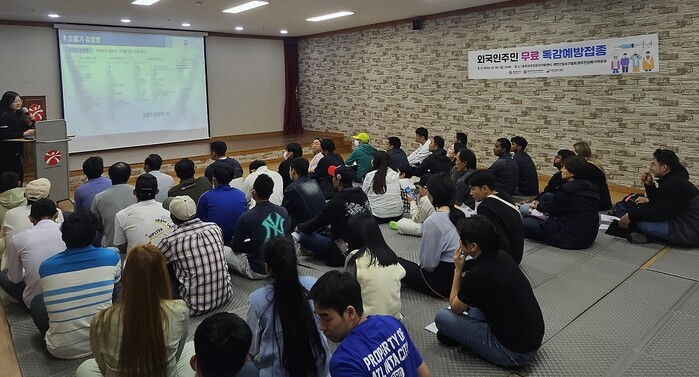이번 독감백신 예방 접종은 근로자의 건강보호 및 증진을 위해 설립된 대한산업보건협회 광주전남북지역본부에서 독감백신 100도스 후원과 함께 예방접종 인력을 지원, 광주에 거주하는 외국인근로자 등 외국인주민 100명을 선착순 모집해 접종했다.