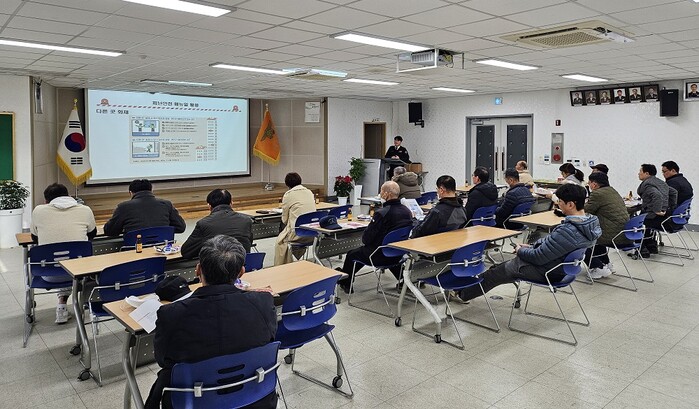 | ▲ 강진소방서, 16일 강진소방서 2층 대회의실에서 아파트 관계자 대상으로 아파트 화재 시 인명피해 최소화를 위한 화재안전 소집교육 / 강진소방서 제공 |