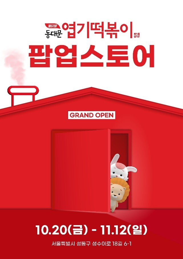 동대문엽기떡볶이가 오는 10월 20일부터 약 3주간 서울 성동구 성수동에 팝업스토어를 연다.