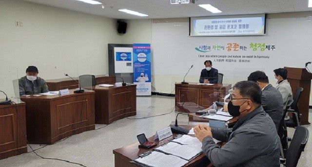 | ▲ 김인수 해남군 소재 인수영농RPC 대표(우측)가 제주도 학교급식 친환경쌀 공급자 협의회에서 참석해 공급 선정결과를 지켜보고 있다. / 사진=해남군 제공 |