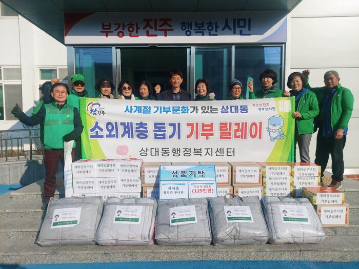 진주시 상대동 새마을협의회(회장 하만명)와 새마을부녀회(회장 손혜숙)는 26일 어려운 이웃을 위해 현금 30만 원과 95만 원 상당의 생필품을 상대동행정복지센터에 기부했다.