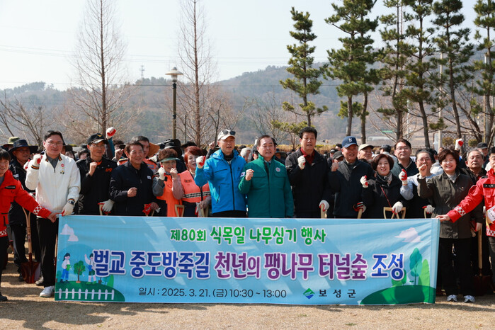 [보성=황승순 기자] 전남 보성군은 제80회 식목일을 맞아 숲과 나무의 소중함을 알리고, 녹색공간을 확대하기 위해 벌교 중도방죽길에서 나무 심기 행사를 개최했다고 21일 밝혔다.