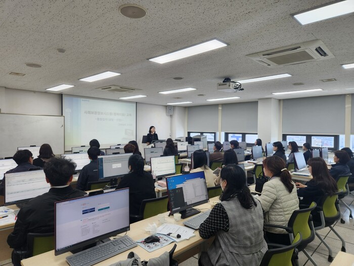 이번 교육은 한국사회보장정보원의 전문강사를 초청해 새롭게 도입된 차세대 사회보장정보체계 ‘행복e음’의 주요 내용과 초기상담, 신청정보등록, 효과적인 통합사례 관리 등을 알기쉽게 설명했다.