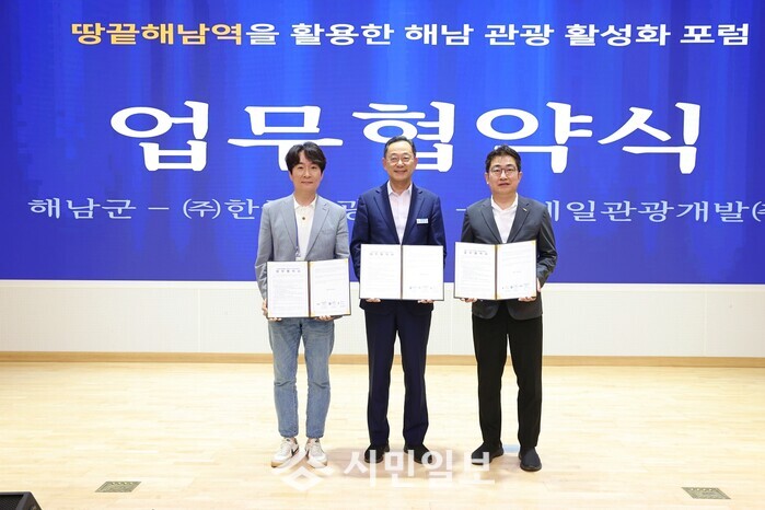 협약식에는 명현관 해남군수와 한국관광학회 서원석 회장, 코레일관광개발 권백신 대표이사 등 관계자들이 참석한 가운데 각 기관이 보유한 자원과 전문 역량을 바탕으로 해남의 관광자원을 철도와 연계해 보다 매력적인 체류형 상품으로 개발하고, 전국 단위의 공동 홍보·마케팅을 통해 관광객 유치와 지역경제 활성화를 추진해 나가기로 했다.