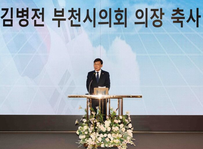| 김병전 의장이 제73주년 재향군인의 날 기념식에 참석, 축사를 하고 있다. (사진=부천시의회) |