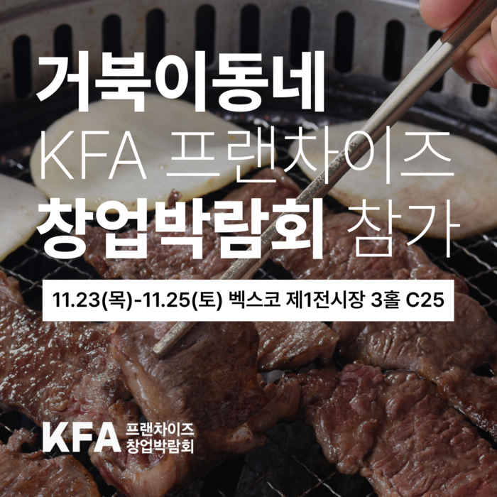 [시민일보 = 이창훈 기자] 가성비 숙성 고깃집을 지향하는 거북이동네가 오는 23일부터 25일까지 3일간 부산에서 개최되는 ‘2023 부산 KFA 프랜차이즈 창업박람회’에 참가한다고 밝혔다.