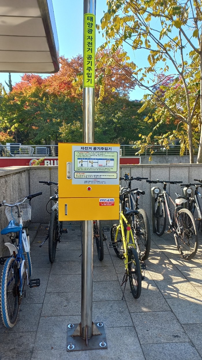 [시민일보 = 이대우 기자] 서울 서초구(구청장 전성수)가 시민들의 안전하고 편리한 자전거 이용을 위해 서초구 지역내 7곳에 ‘태양광 자전거 공기주입기’를 설치했다.