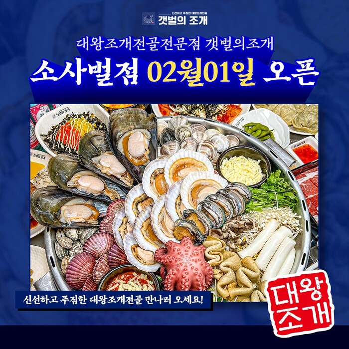 [시민일보 = 이창훈 기자] '대왕조개전골'로 알려진 프랜차이즈 갯벌의조개가 지난 1일 소사벌점을 신규 오픈했다고 밝혔다.