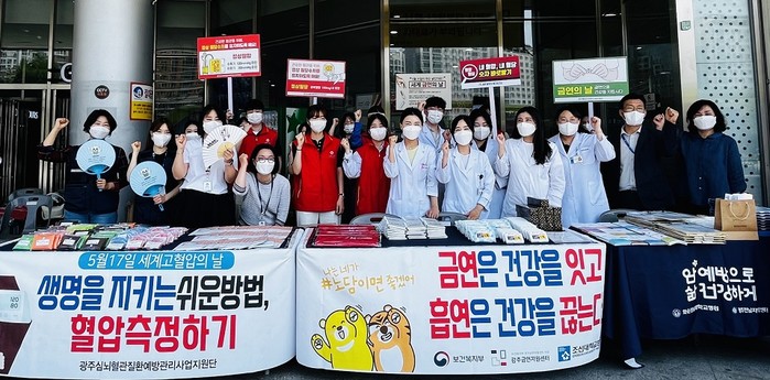 [광주=정찬남 기자] 광주광역시는 세계 고혈압의 날(5월17일)과 세계 금연의 날(5월31일)을 기념해 24일 유스퀘어 야외광장에서 민·관 합동캠페인을 개최했다.