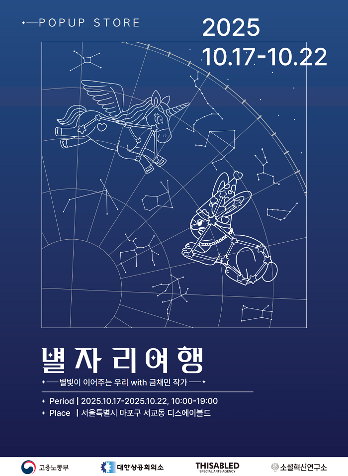 고용노동부, 대한상공회의소, 디스에이블드 소셜혁신연구소에서 공동 수행하는 ‘미래내일 일경험 사업(ESG지원형)’의 지원을 받은 청년 팀 ‘별빛 공작소’는 백두산, 오선민, 주보람, 하수정 4인으로 구성되었으며 이번 전시와 굿즈를 기획하였다.
