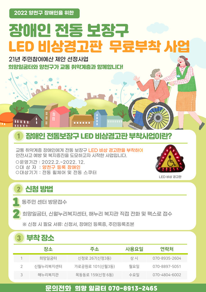 | ▲ 장애인 전동 보장구 LED 비상경고판 부착사업 홍보 포스터. (사진제공=양천구청) |