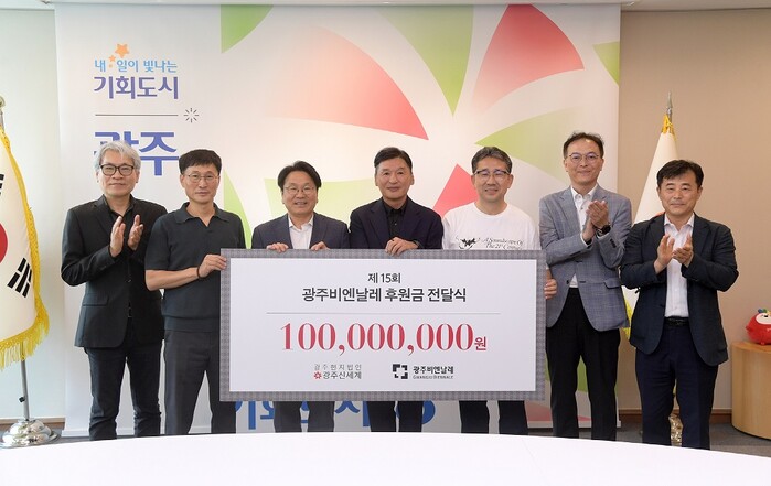 광주신세계는 올해로 창립 30주년을 맞는 제15회 광주비엔날레의 성공 개최와 지역문화예술 발전을 위해 써달라며 후원금을 쾌척했다.