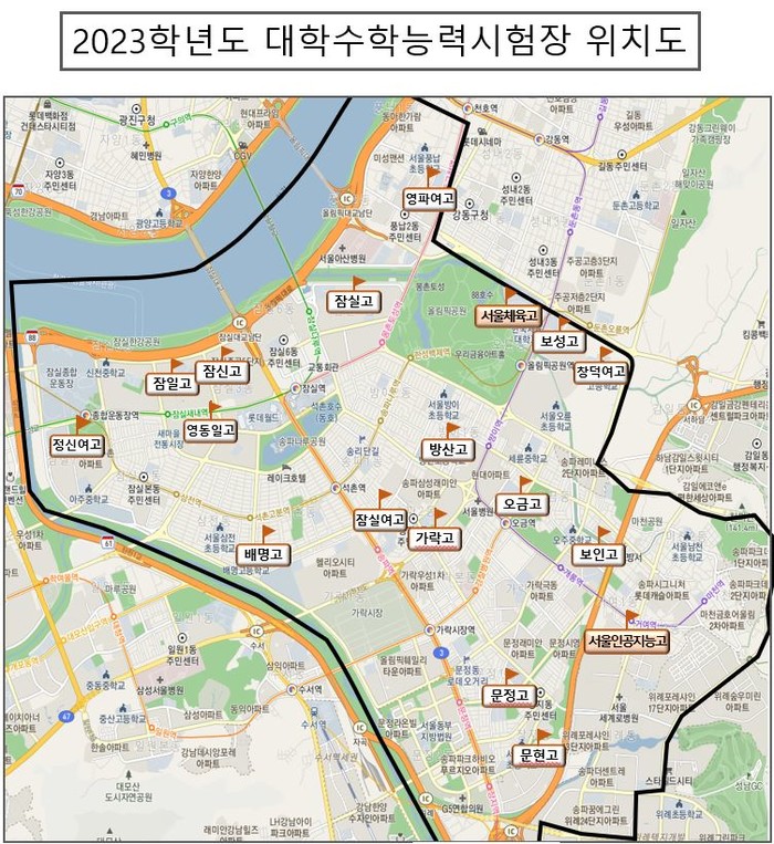 현재 송파에는 ▲일반시험장 16개교 ▲별도시험장 2개교(서울체육고, 인공지능고) 총 18개의 학교에 시험장이 설치됐으며 9109명의 수험생이 시험을 치른다.