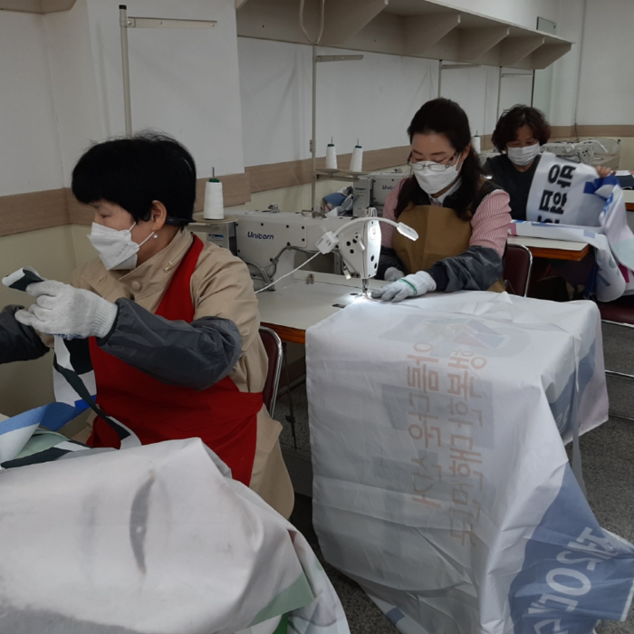 이후 시는 수원도시공사에 폐현수막 440매를 지원했고, 수원도시공사는 수원시여성단체협의회 회원·자원봉사자 등 시민 70여명과 함께 수원시가족여성회관 의상실에서 폐현수막을 활용해 재봉틀로 자루를 만들었다.