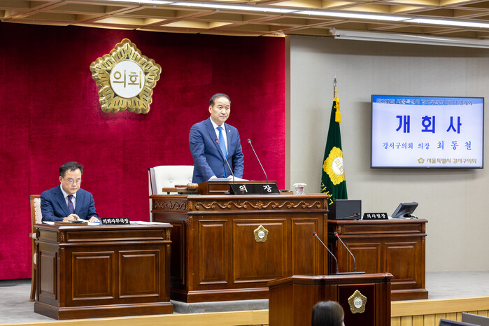 최동철 의장은 개회사를 통해 "2023년도 상반기는 강서구민들에게 위기의 시기였다"라며 "전국이 떠들썩했던 전세 사기 피해로 여전히 절망 속에 고통받고 있는 피해자들을 위한 근본적인 해결책이 강구되어야 할 것"이라고 밝혔다.
