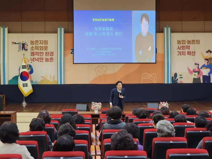 이날 사공정규 교수는 '치유농업과 생활 속 스트레스 관리'라는 주제의 특강에서 기존의 일반적으로 진행되는 일방적인 주입식 강연 형식에서 탈피해, 청중과 자유롭게 질문하고 대화하는 형식으로 120분 동안 진행했다.