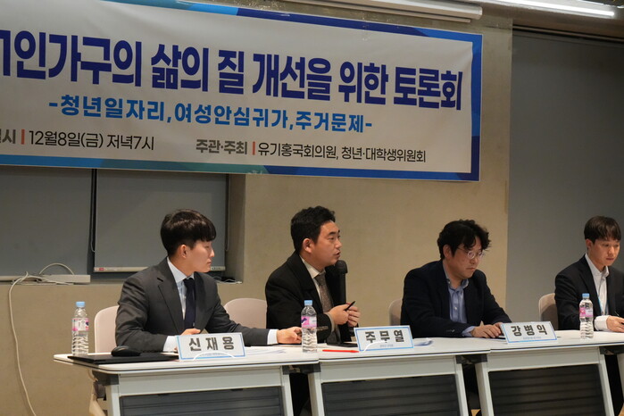 [시민일보 = 여영준 기자] 주무열 서울 관악구의회 의원이 최근 관악청년청에서 유기홍 국회의원 및 관악갑지역위원회 청년·대학생위원회와 함께 청년 1인가구 삶의 질 개선을 위한 토론회를 진행했다.