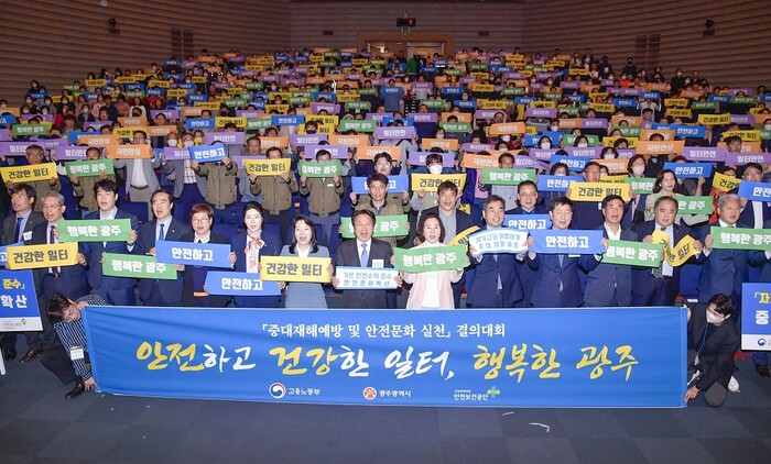 광주광역시(시장 강기정)는 27일 시청 대회의실에서 광주지방고용노동청, 안전보건공단 광주광역본부와 ‘중대재해예방 및 안전문화 실천 결의대회’를 열었다.