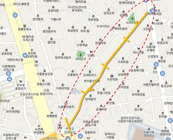 | ▲ 보행환경 공사 위치도. (사진제공=금천구청) |