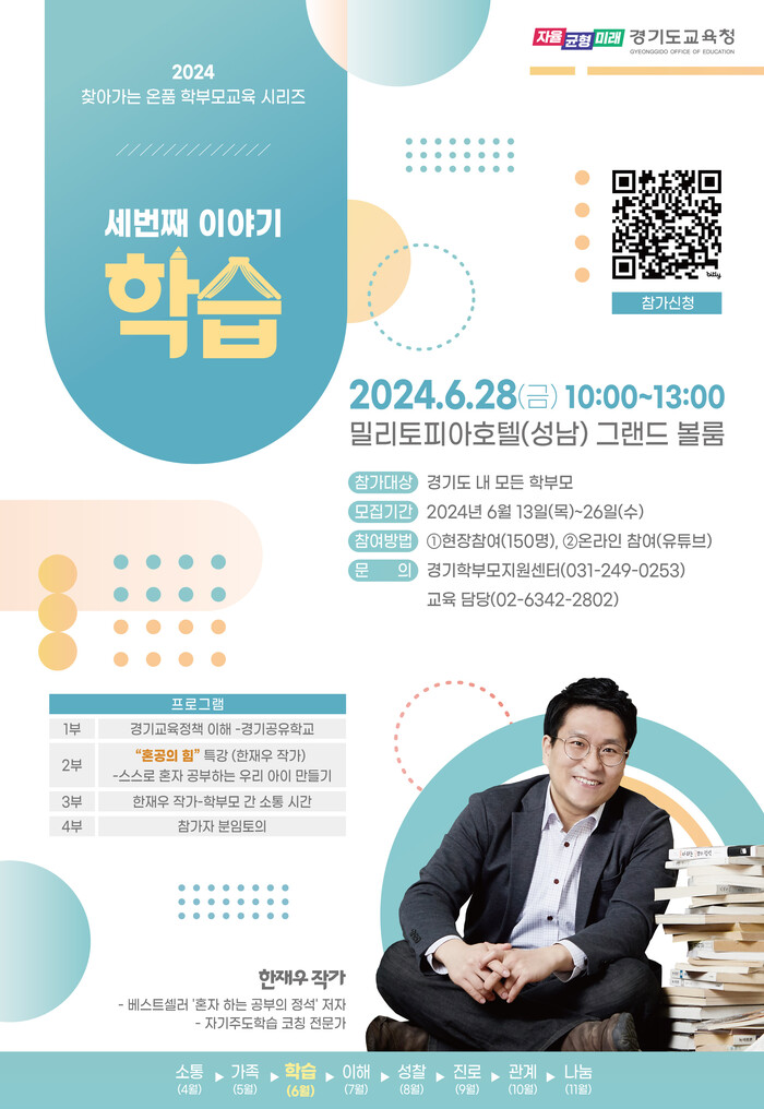 희망하는 학부모는 13일부터 안내문의 큐알(QR)코드에 접속해 개별 신청하면 된다. 현장 참여 학부모에게는 추첨을 통해 작가의 저서를 증정한다.