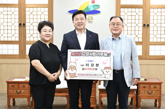 [예산=김의석 기자] 충남 예산군은 이강본 (주)토페스 대표가 고향사랑기부제를 통해 군에 500만원을 기부했다고 16일 밝혔다.
