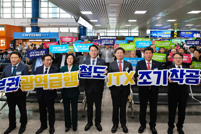 이 시장은 이날 오후 청주국제공항 여객청사에서 열린 ‘중부권 광역급행철도(JTX) 조기착공 촉구 결의대회’에서 지난 8월 국토교통부가 한국개발연구원에 의뢰한 민자적격성 조사가 신속하게 통과돼 철도 신설을 위한 착공이 조기에 이뤄져야 한다고 강조했다.