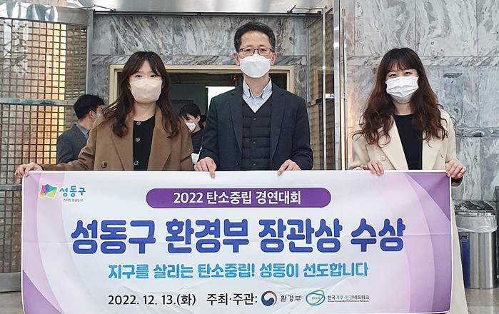 [시민일보 = 홍덕표 기자] 서울 성동구(구청장 정원오)는 최근 서울여성플라자에서 열린 '2022 탄소중립 경연대회'에서 '지구를 살리는 탄소중립! 성동이 선도합니다'라는 주제로 환경부 장관상을 수상했다고 15일 밝혔다.