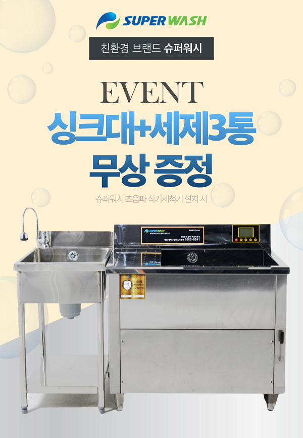 이에 ‘슈퍼워시 세제’는 초음파식기세척기 설치 시 싱크대와 세제 3통을 무상제공하고, 무료 설치해주는 프로모션을 제공한다고 6일 밝혔다.