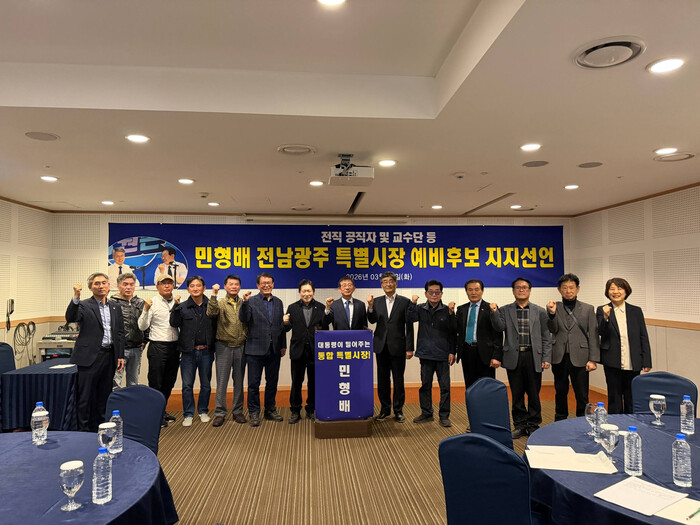 [남악=황승순 기자]전남과 광주지역 전직) 공직자와 교수단 125인은 2026년 3월 24일16시에 홀리데이인호텔 컨벤션홀에서 민형배 전남.광주특별시장 예비후보 지지를 선언했다.