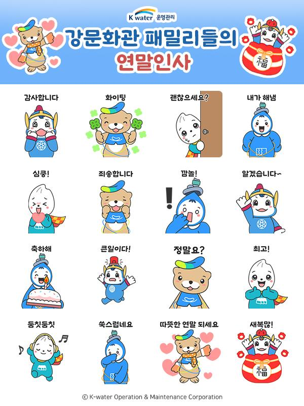 이번에 배포되는 이모티콘은 ‘강문화관 패밀리들의 연말 인사’라는 이름으로 총 16종이 제작됐다. 각 지역의 강 특성을 담아 탄생한 4개의 캐릭터가 다양한 감정을 표현하며, 귀엽고 친근한 디자인으로 일상에서 실용적으로 활용할 수 있도록 구성됐다.