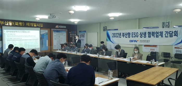 부산항만공사(BPA, 사장 강준석)는 사회적 가치 창출의 영향력을 확대하고자 26일 북항 재개발 사업 현장 사무실에서 ‘2022년도 상반기 ESG 상생 협력 업체 간담회’를 개최했다고 밝혔다.