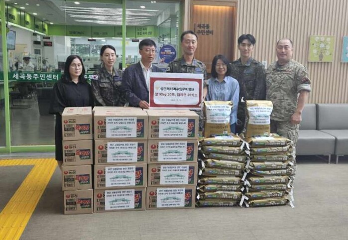 이번 나눔에는 다양한 기관·기업이 참여했다. ▲공군제15특수임무비행단이 20가구에 쌀 10㎏와 컵라면 ▲국제위러브유운동본부가 20가구에 즉석밥 등 식료품 세트 ▲강남노인복지관에서 50가구에 생필품 ▲대한적십자사에서 홀몸 어르신 55가구에 추석맞이 명절음식 등 효도패키지 ▲세곡동 지역사회보장협의체에서 홀몸어르신 및 장애인 1인가구 60가구에 식료품 세트를 기부했으며, 동은 이렇게 기부받은 1163만원 상당의 기부 물품을 종합해 관내 저소득 취약계층 총 205가구에 전달했다.