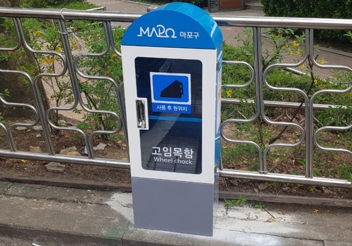 [시민일보 = 박준우 기자] 서울 마포구는 경사가 있는 거주자우선주차장에 차를 고정할 수 있는 고임목함 15개를 설치했다고 25일 밝혔다.