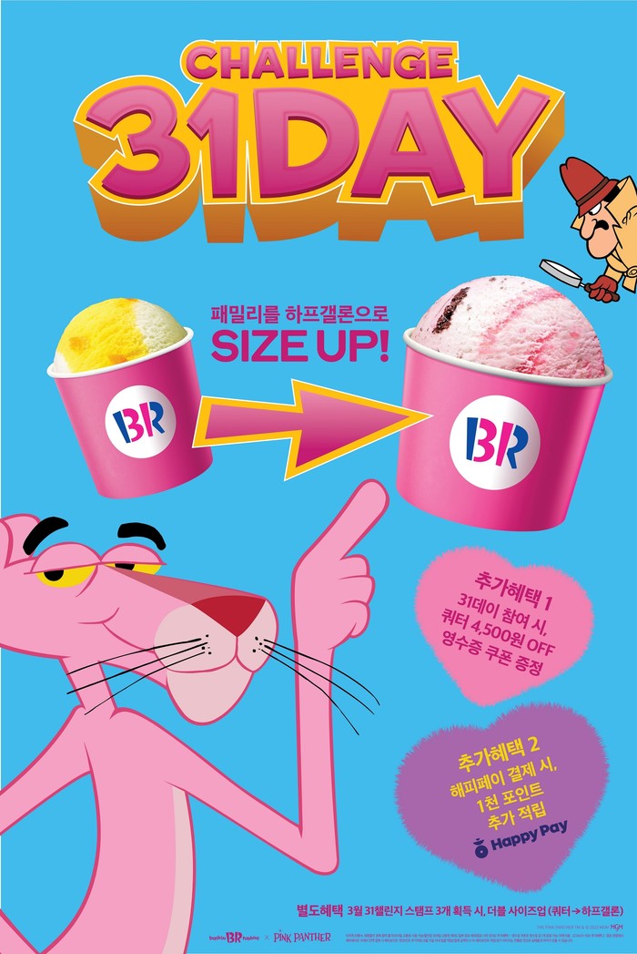 또한, 3월 1일부터 30일까지 이달의 제품을 3개 이상 구입한 이력이 있는 고객에게는 31일 당일 쿼터(17,000원) 제품 구매 시 하프갤런(29,000)으로 더블 사이즈 업그레이드가 가능한 혜택을 제공한다. 해당 기간 이달의 제품을 구입하고 해피앱으로 포인트를 적립 또는 사용하면 자동으로 스탬프가 생성되어 확인이 가능하다.