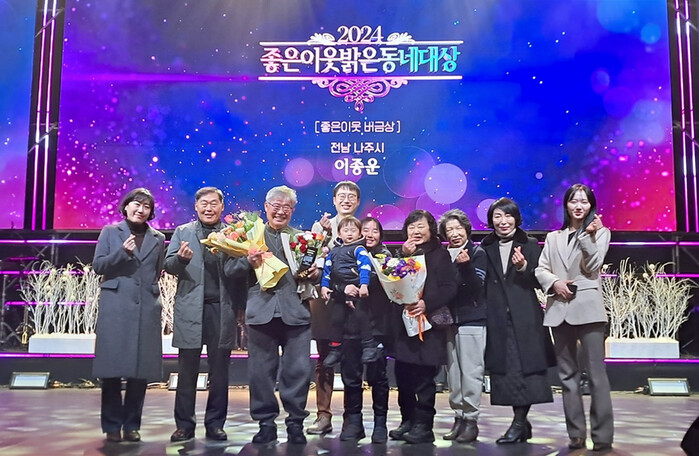 [나주=황승순 기자]전라남도 나주시(시장 윤병태)는 최근 김대중컨벤션센터에서 열린 좋은 이웃 밝은 동네 시상식에서 문평면 용문사랑공동체 이종운 대표가 ‘좋은이웃 버금상’을 수상했다고 18일 밝혔다.