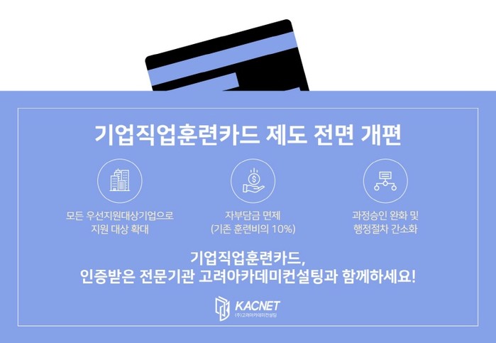 한편, 고용노동부 인증 우수훈련기관인 고려아카데미컨설팅은 사업이 처음 시행될 때부터 사업에 참여해 북러닝과 이러닝 등 다양한 유형과 카테고리 분야의 기업직업훈련카드 과정을 운영해왔다.