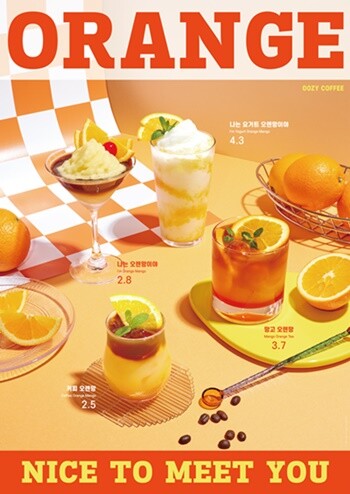 이번 신메뉴는 오렌지를 베이스로 한 ▲커피 오렌망 ▲나는 오렌망이야 ▲망고 오렌망 ▲나는 요거트 오렌망이야 총 4종이다.