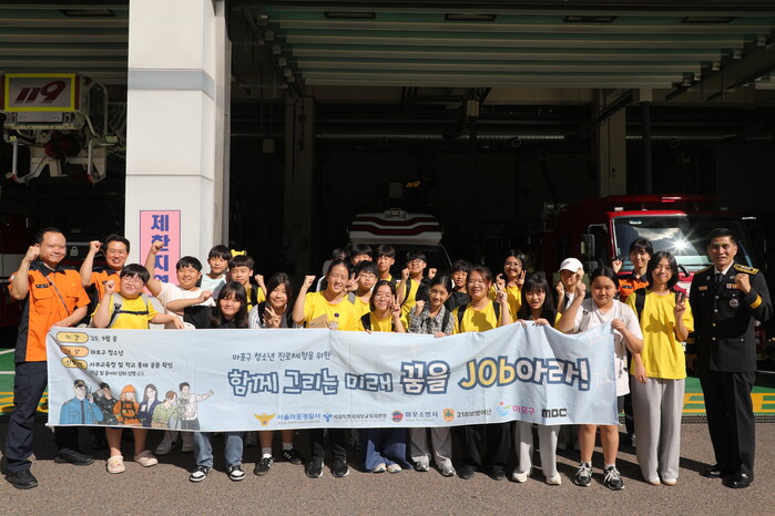 [시민일보 = 문민호 기자] 서울 마포소방서(서장 서영배)는“마포구 관내 청소년들을 대상으로 진로 탐색과 안전의식 함양을 위해 ‘함께 그리는 미래, 꿈을 Job아라!’ 진로직업체험 프로그램을 운영했다”라고 18일 밝혔다.