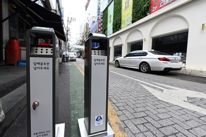 | ▲ 지역내 담배꽁초 상습투기지역에 설치된 '담배꽁초 전용 수거함'. (사진제공=인천 부평구청) |