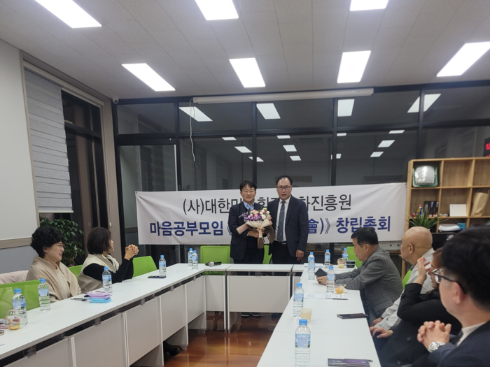 [시민일보 = 전용혁 기자] 사단법인 대한민국힐링문화진흥원(이사장 사공정규)은 14일 힐링문화진흥원에서 마음공부 모임 '청심회(淸心會)' 창립총회를 개최하고 이재덕 회장을 선임했다고 밝혔다.
