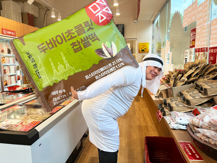 메고지고 관계자는 "아랍에미리트(UAE) 두바이에서 온 디저트인 두바이 초콜릿과 우리나라 전통 디저트인 찹쌀떡을 결합해 두바이 초콜릿을 K디저트화했다"라고 밝혔다.