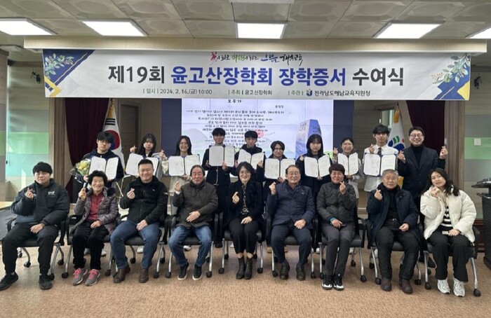 [해남=정찬남 기자] 전라남도 해남교육지원청(교육장 이자영)은 16일 해남 지역의 발전과 인재 육성을 위한 제19회 윤고산장학회 장학증서 수여식을 가졌다.