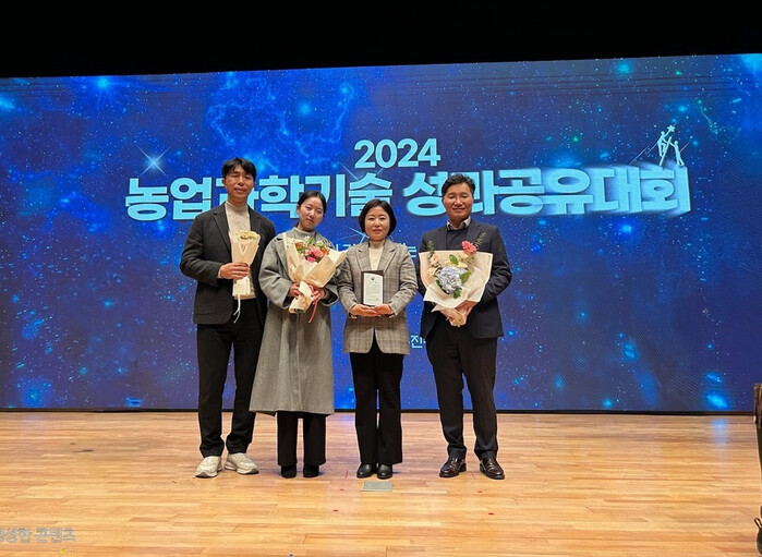 | ▲ 광주광역시농업기술센터, 11일 농촌진흥청 주관 ‘농업과학기술 성과공유대회’에서 최우수 기관 선정, 농촌진흥청장상 수상 기념촬영 / 광주광역시 제공 |