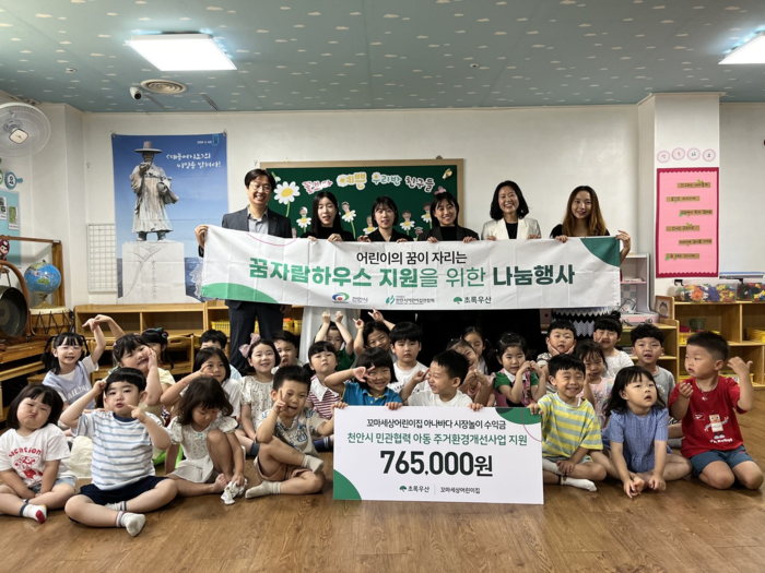 꼬마세상어린이집 원아들의 아나바다 시장놀이 수익금으로 마련된 후원금은 천안시와 초록우산이 함께 추진하고 있는 민관 공동 협력 아동 주거환경개선사업인 ‘꿈자람하우스’ 대상 가정의 주거환경 개선을 위해 사용될 계획이다.