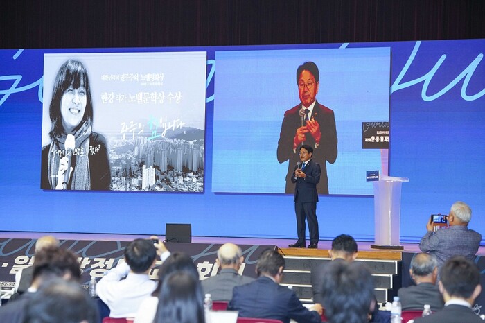 강 시장은 먼저 “예향·미향·의향의 도시 광주에 기쁜 소식이 있다. 한강 작가의 노벨문학상 수상으로 광주는 노벨상의 도시가 됐다”며 “광주의 민주주의와 문화를 세계가 인정해준 것 같아 참으로 기쁘고 감사하다”고 밝혔다.