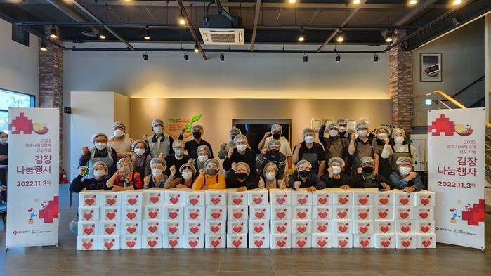 [광주=정찬남 기자] 광주사회적경제 선도기업 22개사가 참여한 김장김치 1000kg이 관내 취약계층 350가구에 전달됐다.