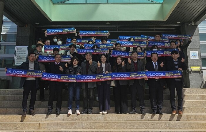 | ▲ 해남교육지원청, 19일 전라남도 해남 민·관·산·학 교육협력위원회 운영위원 및 간부공무원들과 운영위원회의 개최 후 해남교육청 입구에서 2024. 글로컬 미래교육 박람회 성공 개최 다짐 세리머니 / 해남교육지원청 제공 |