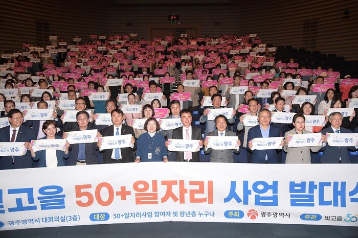 ‘빛고을 50+일자리 발대식’ 한 참석자는 “지역사회 공헌과 사회적 가치 창출을 바탕으로 내☆일이 빛나는 기회도시 광주를 만들기 위해 모범적이고 자발적으로 참여해 활동하겠다.”고 다짐했다.
