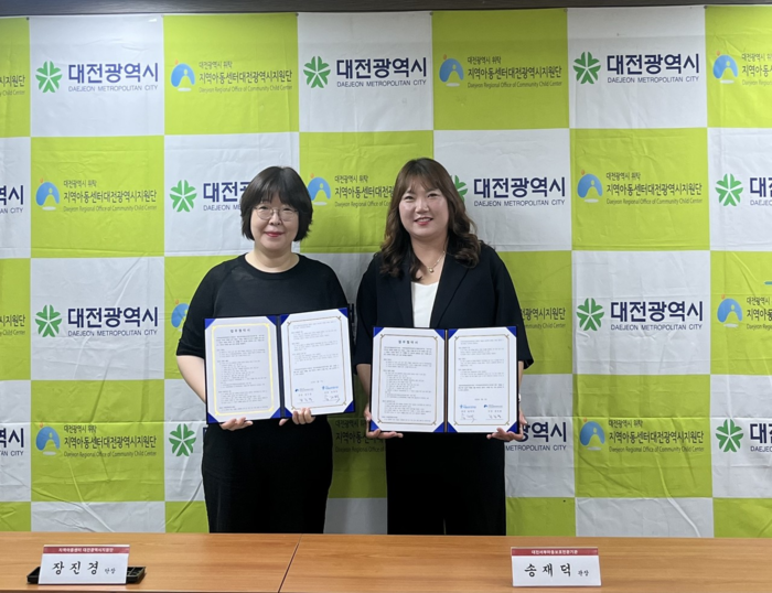 | ▲ (왼쪽부터) 지역아동센터대전광역시지원단(장진경 단장) 대전서부아동보호전문기관(송재덕 관장) |
